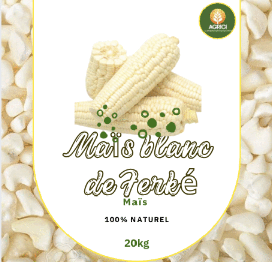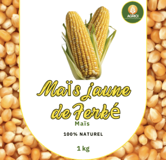 Maïs jaune de FerkéSemence locale pour une production 100% Naturel. Avec une Quantité à l’ha de 20kg semence, vous pouvez produire plus 9 tonnes de Maïs de qualité.Produits 100% Naturel